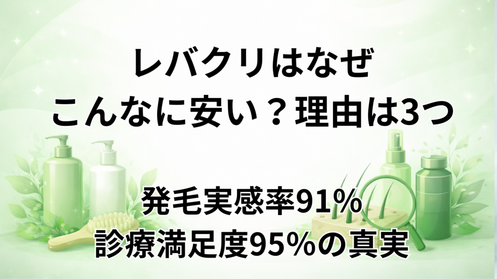 レバクリ(AGA治療)なぜこんなに安い?理由は3つ|発毛実感率91%・診療満足度95%の真実