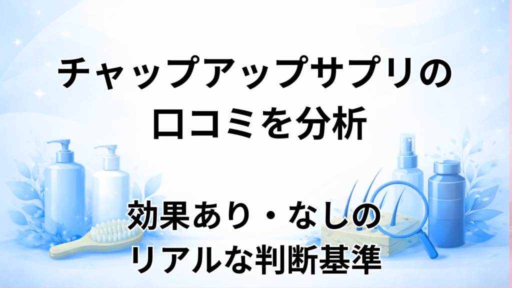 この記事では、チャップアップサプリメントの効果について、成分・口コミ・向いている人の特徴まで含めてまとめています。 結論から言うと、チャップアップサプリメントは、飲むだけで髪が生えるような即効性のあるものではありません。 ただし、栄養不足... -